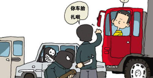出門在外首要要注意的就是防盜,當(dāng)然防盜也分很多方面,停車時(shí)鎖好門窗,不將“引人注意”的物品放在車?yán)?。另外,?dāng)我們停下來休息的時(shí)候,盡量把車停放在有人看守或指定地區(qū),不靠譜的地方不要停。行車途中,如遇有人招手?jǐn)r車,不要輕易停車,尤其是看起來就來者不善的人。往往這些人就是利用事主好奇、熱心這些途徑開始犯罪的。比如下圖:
